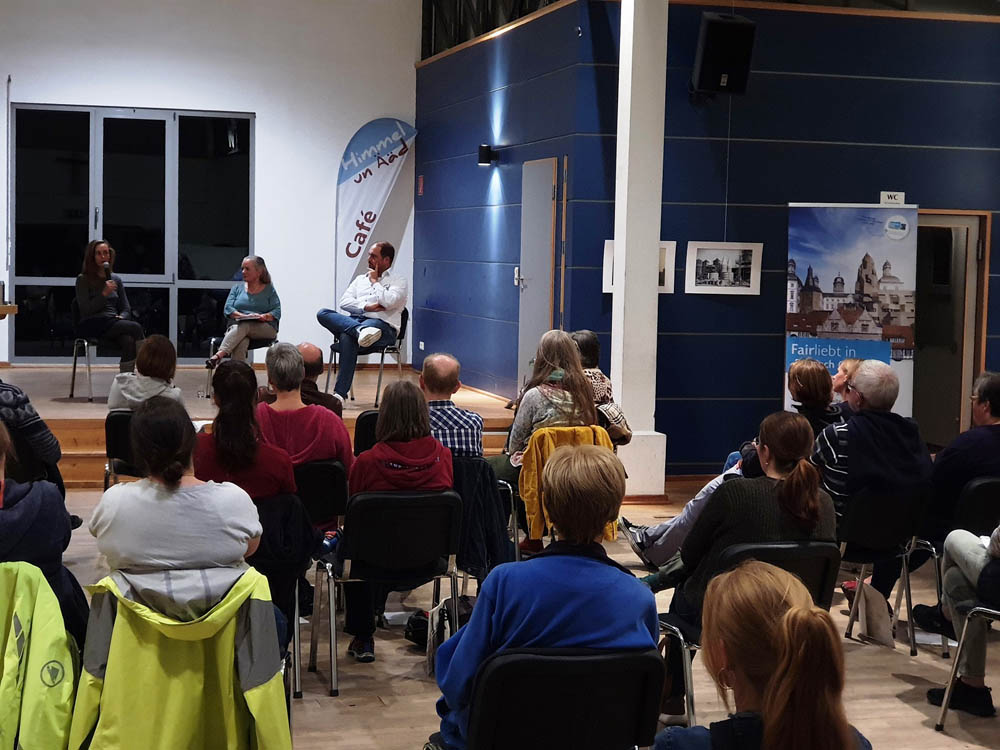 Mit seinem umfassenden Wissen konnte er viele Möglichkeiten und Grenzen aus Sicht eines wirtschaftlich arbeitenden Betriebes aufzeigen. Witzige Info am Rande: er trägt seit einigen Tagen Schuhe, die komplett aus Plastikabfall gefertigt wurden – bis dahin fühlt er sich darin sehr wohl.Die Zuhörer beteiligten sich intensiv an dem Gespräch – mit vielen Fragen, eigenen Erfahrungen und Gedanken.